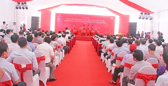 Sáng 26/6, UBND tỉnh Nghệ An phối hợp với tập đoàn Vingroup tổ chức Lễ động thổ dự án tổ hợp khách sạn, khu vui chơi giải trí, biệt thự nghỉ dưỡng Vinpearl Cửa Hội tại phường Nghi Hải, thị xã Cửa Lò.